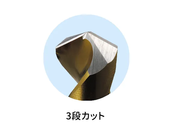 ドリル径φ26mmまでの円錐型研磨に加え、3段カットも可能にした複合タイプ