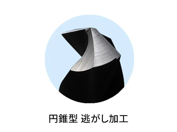 ドリル径φ11.1mm~34.0mm(φ7.1~11.0mmオプション)まで円錐型研磨が可能。