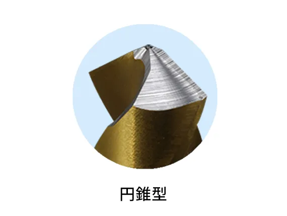 φ2.0mm~13.0mmまでの円錐型研磨の性能に加え、さらに切り刃の後ろ側を大きくフラットに落とす加工(3段カット)も可能にした複合タイプ。